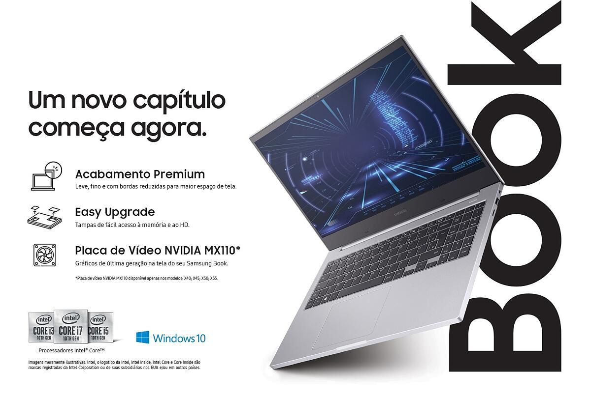 O Notebook Samsung Book x55 i7 é um excelente notebook de nível intermediário com ótimo custo benefício. Ele possui um processador Intel Core i7 e vem acompanhado de 16Gb de memória RAM, 1Tb de HD + 128G de SSD e uma placa de vídeo NVIDIA Geforce MX110.