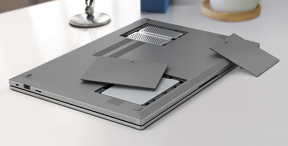 - Possui fácil expansão de memória e HD através das tampas traseiras.